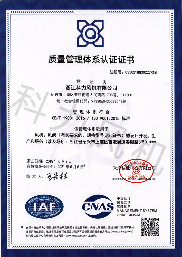 質(zhì)量管理體系認(rèn)證證書