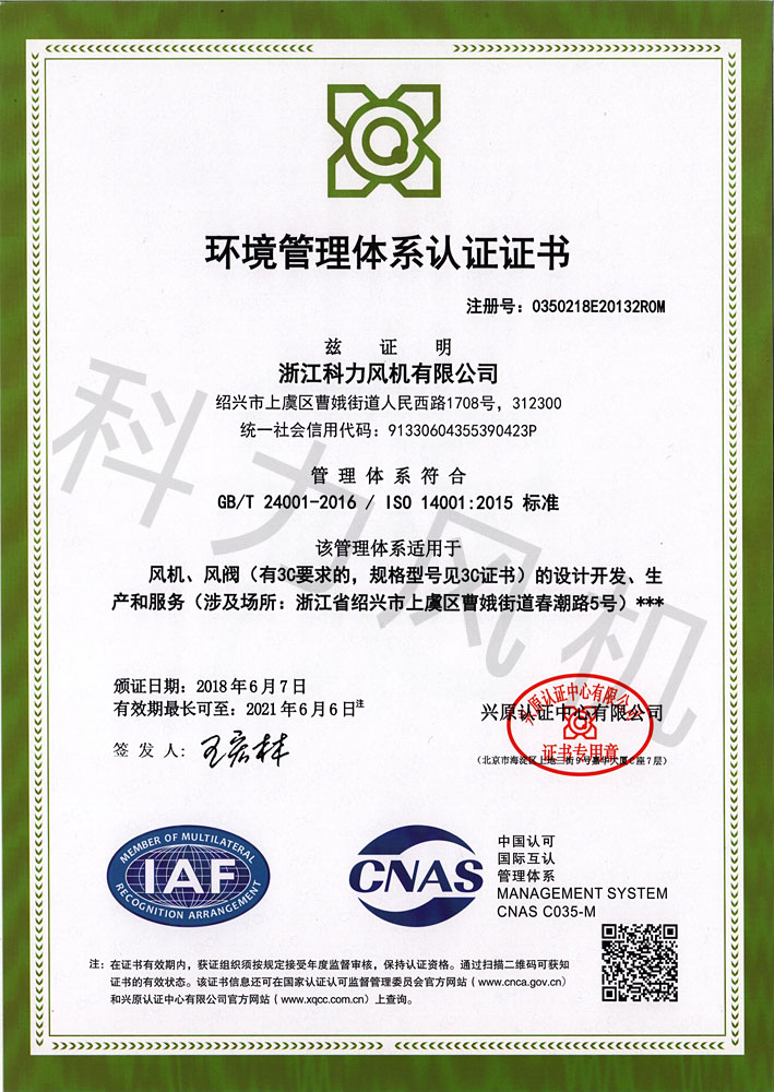 環(huán)境管理體系認(rèn)證證書