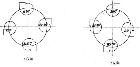 本系列風(fēng)機分A式直聯(lián)傳動和E式皮帶傳動,按葉輪旋轉(zhuǎn)方向分為左旋和右旋,旋轉(zhuǎn)方向從電機或皮帶輪側(cè)看為準(zhǔn),以出風(fēng)口分為00、900、1800、2700四種出風(fēng)方式,訂貨時需注明。